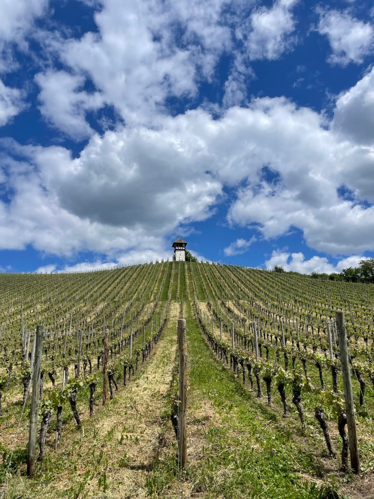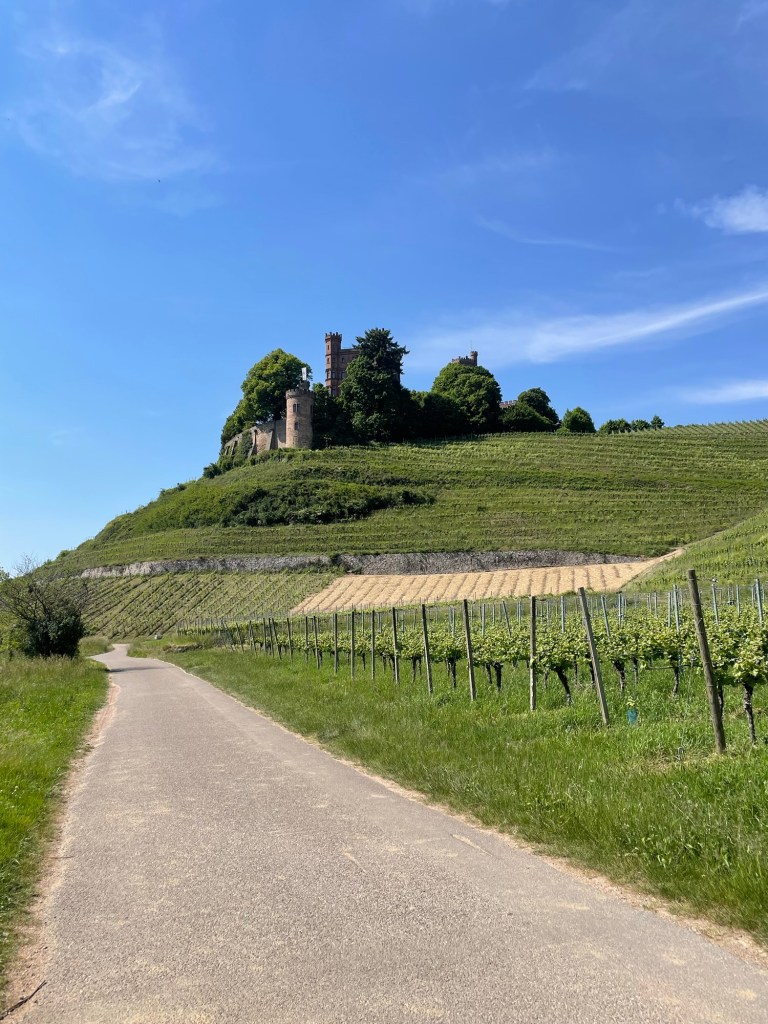 Links voor mij zie ik het middelgebergte oprijzen maar ik houd rechts aan en blijf laag. Ik passeer Schloss Ortenberg, een klein kasteeltje omringd door wijngaarden. Het valt me op dat de Duitse chauffeurs veel minder dan de Vlamingen fietsers voor laten gaan. Zelfs wanneer auto’s toch al veel vaart minderen om af te slaan, moet de fietser nog steeds wachten.