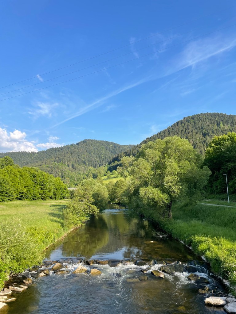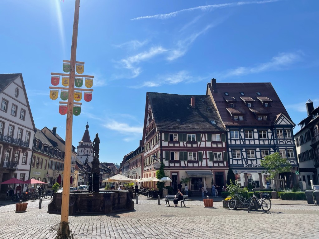 Als kind stelde ik mij bij het Zwarte Woud altijd iets donkers en sprookjesachtigs voor maar op deze zonnige dag blijkt daarvan weinig te kloppen. Ik kom door het kleurrijke Gengenbach en bevind mij vooralsnog niet tussen de donkere dennenbomen waarnaar dit woud genoemd zou zijn. Aan weerszijden van het fietspad glimmen groene dennenbossen op de heuvels, maar mijn eigen route blijft vlak lopen.