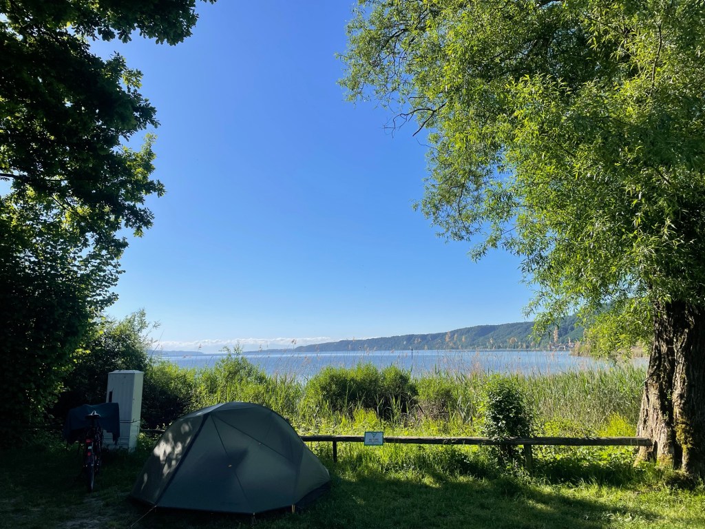 Ik rij een toer op het eilandstadje Lindau, zie een Rottweiler, en ga dan langs de oever op zoek naar een slaapplek. De hele oever blijkt – niet geheel onverwacht – beschermd gebied en ik beslis om toch maar niet aan het meer te blijven. Enkele kilometers naar het noorden volg ik een kleinere rivier (Leiblach) tot ik een plek gevonden heb. Als ik begin aan de redactie van dit stuk passeert op een afstand een groep vossen met wel 4 welpen. Zelden zoiets schattigs gezien!