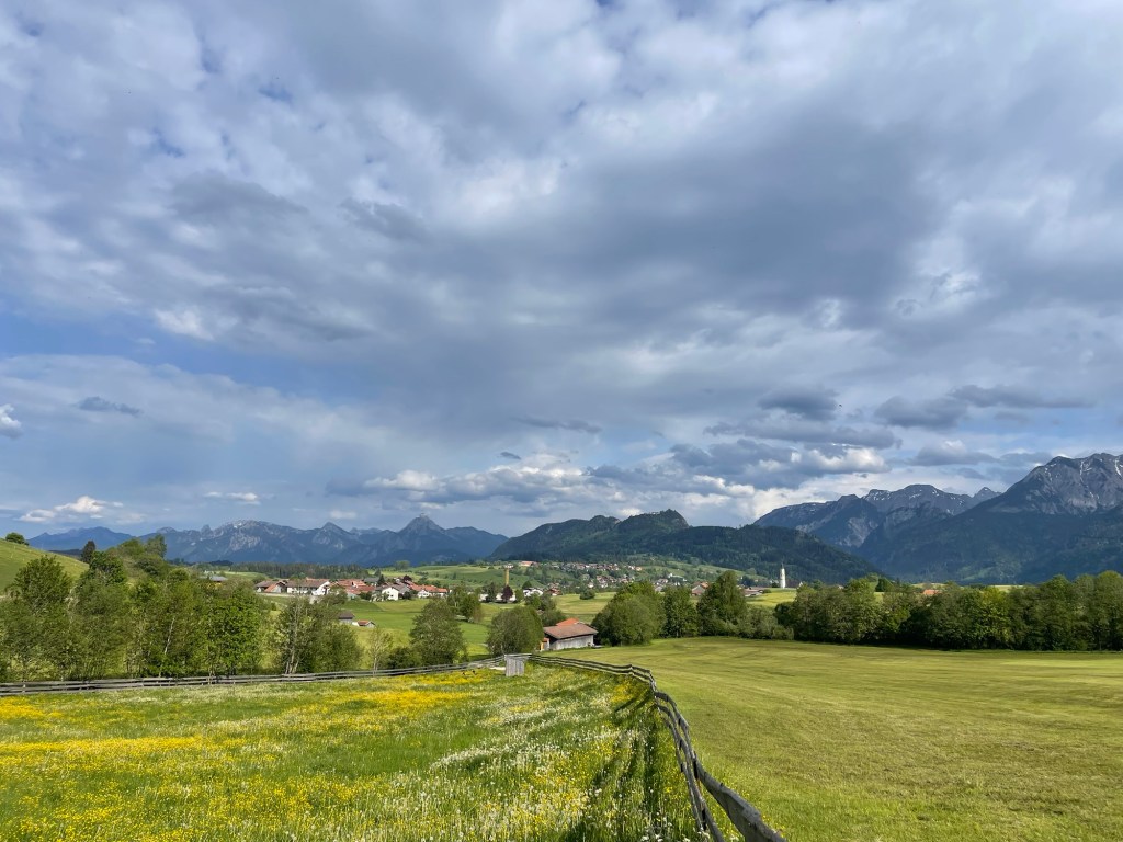 Er zijn op deze zaterdag veel Beiers op de baan voor brandweerdemonstraties, vlooienmarkten, fanfare-optredens en loopwedstrijden-met-je-hond. In Immenstadt doen de klokken onophoudelijk van bim bam Beieren. Met nog een Mohnstreusel achter de kiezen begin ik aan een laatste klim van 10 km. In elke kortgemaaide weide zit één kat over haar territorium te waken.