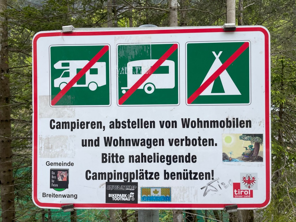 In Tirol is alles verboden, zeker de plezante dingen. Overal staan borden die kamperen, duiken, fietsen, wandelen, je hond uitlaten en wat nog allemaal verbieden. Kooien met stenen in die dienen als hagen naast huizen blijken hier ingeburgerd en ik betrap mezelf op de gedachte dat die dingen verboden zouden moeten zijn. Verdorie, ik verander zelf al in een Oostenrijker!
