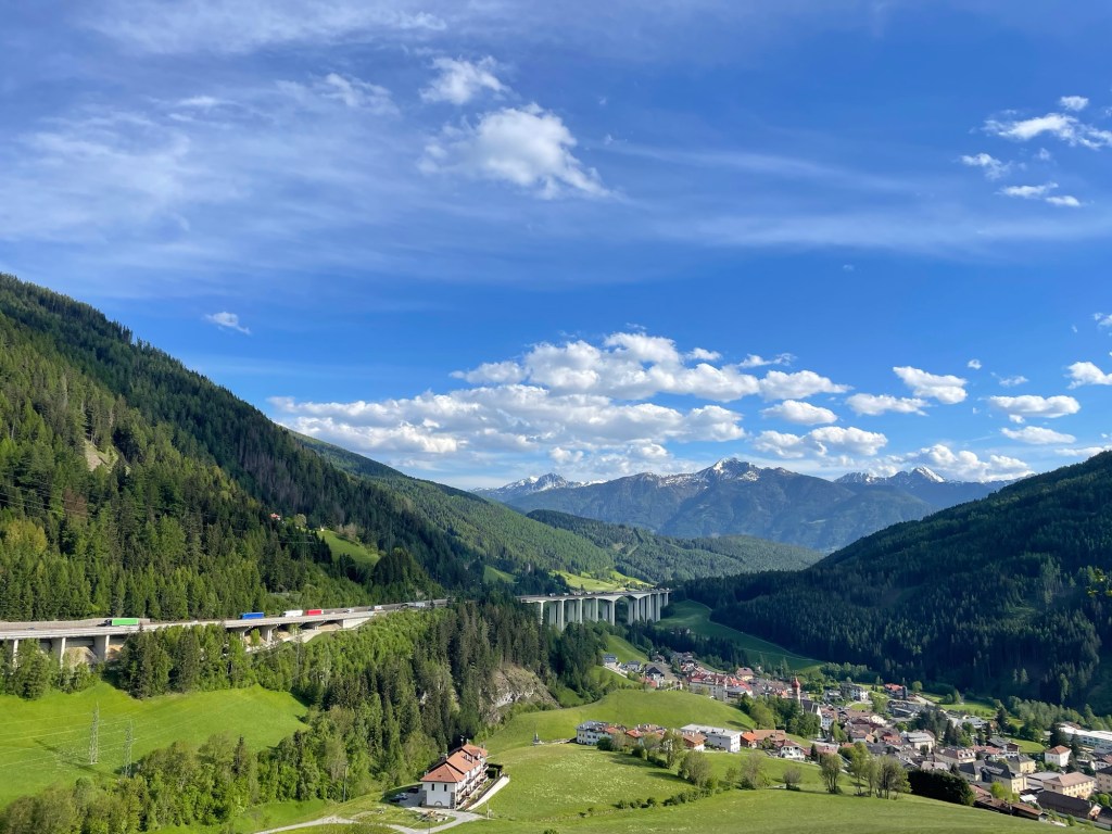 Voorbij Innsbruck volgt de route een autobaan steil bergop. Ik wijk nauwelijks af van de witte lijn terwijl hordes PKW’s linkslangs sjezen. Na de eerste zware col slinger ik afwisselend traag en snel door het alpenlandschap. Ik wil vaart maken omdat de rit nog lang is, maar vandaag bepaal ik niet de snelheid, dat doen de bergen. De Tirolers maaien hun schuine almen in vreemde voertuigen alsof de zwaartekracht geen vat op hen heeft.