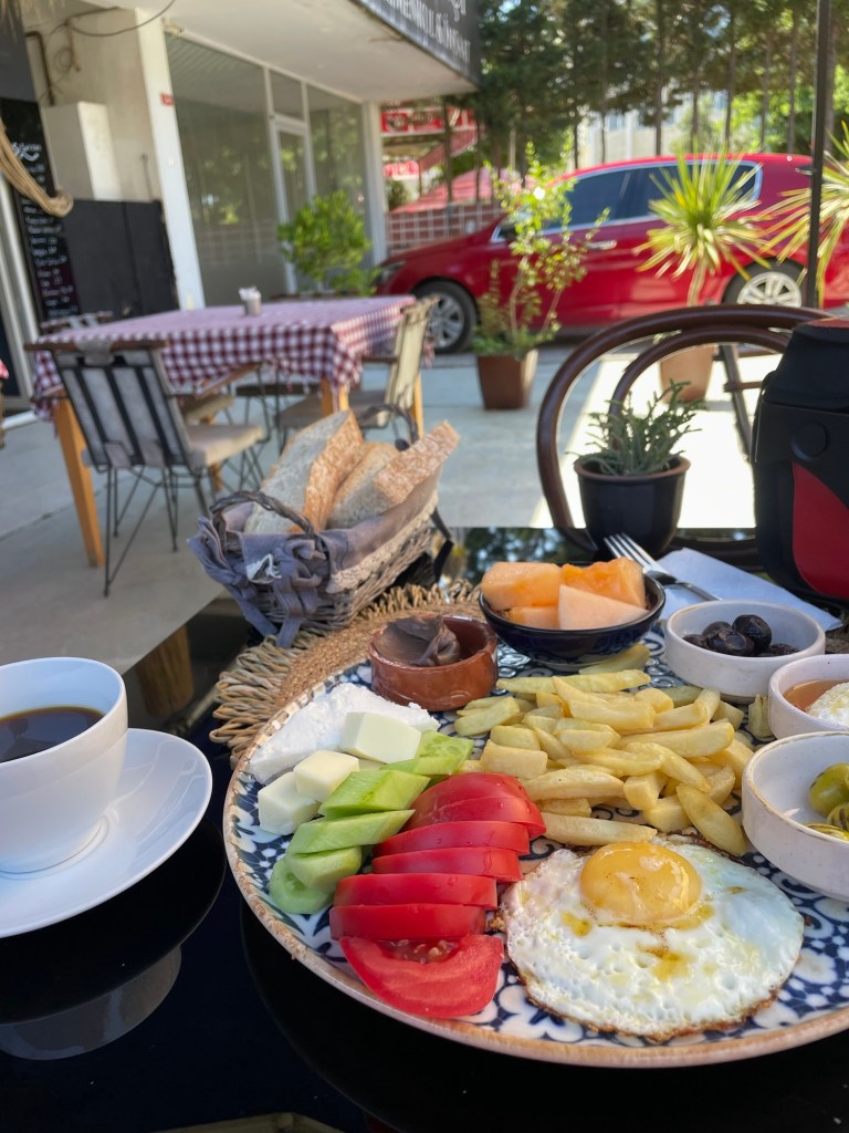 Voorbij Şile loopt er volgens Komoot een grote baan langs de kust. Volgens mijn ogen loopt hier just niks. De strakke weg moet straks nog gelegd worden. De bestaande baan kronkelt langs de zee, op en neer van dorp naar dorp, boven, onder, links en rechts. Tijdens een banaanbreak informeert een zeldzame coureur naar mijn reisplannen. Hij sluit heel attent af met ‘I hope you never have any problem’. We zullen zien, lieve man.