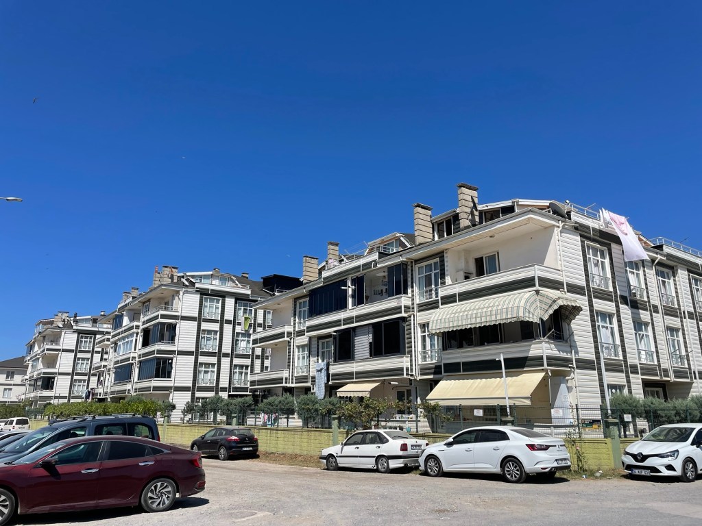 In Denizköy is de helft van mijn rijvak een rulle zandbak waarin ik bijna ten val kom. Wat verder kruis ik de zeemond van een getijdenrivier waarop kleurrijke vissersboten dobberen. Het ene moment rij ik door een precair tentenkamp van blauwe, industriële plastic, het volgende door een semi-luxueus prefab-Knokke.