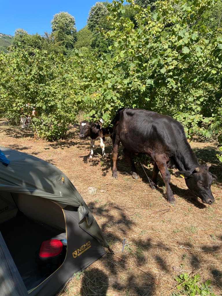 Een herder schudt me de hand. Hij heeft enkel het lage krukje nodig van onder de tafel die ik heb ingepalmd. Zijn runderen stuiven enthousiast door de hazelaars, op zoek naar voedzaam groen. Ik laat ze lustig rond mijn tent grazen, maar als een jonge stier aan mijn kookpot likt, moet ik ingrijpen. De zwermende steekvliegen zijn een minder aangename bijkomstigheid.