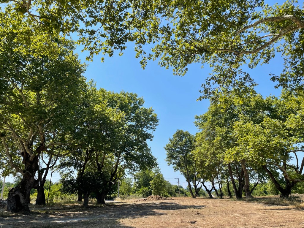 Verderop staat langs de Asar een groep van indrukwekkende, eeuwenoude platanen. Nog een stuk snelweg en dan volgt de langverwachte ijzeren klim waarin zowat alle hoogtemeters van de dag zitten geperst. Als ik ervoor nog snel water tank bij een büfe, verplicht de winkelier mij om met zijn Belgische neef te bellen. Daar sta je dan in het Frans uit te leggen dat je zelf ook niet weet waarom je juist met elkaar aan de lijn hangt. Hij vindt het wel knap dat ik van België tot aan het winkeltje van zijn oom ben gefietst.