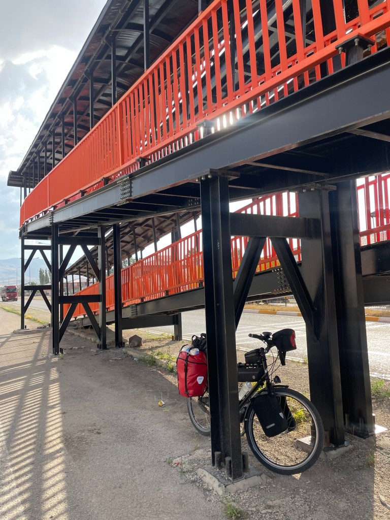 De snelwegberm wemelt van de grondeekhoorns, maar het is aartsmoeilijk ze scherp op beeld te krijgen, gezien hoe ras ze hun holen in glippen. Bij een kraampje probeer ik een halka tatli, een overzoete Turkse churro. Van de verkoper mag ik er niet voor betalen. Alweer ontmoet ik Douglas, die een kwartier eerder bij het kraam precies dezelfde situatie heeft meegemaakt. Een groot fietsavontuur kan uiteindelijk maar zo uniek zijn.