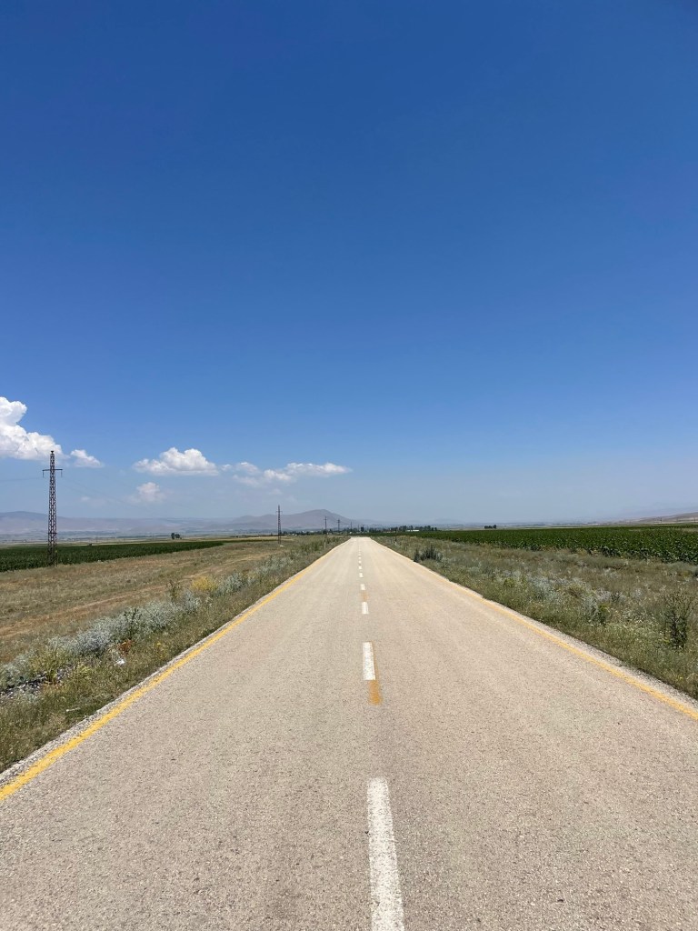 Lunch met çorba (linzensoep) wordt een vaste waarde. Na een maancyclus Turkije vergeet ik nog steeds mijn ayran te schudden voor gebruik. De sympathieke Mehmet geeft nog wat tips voor het stuk Turkije dat rest. Na een enkele klim neem ik het landschap in me op, samen met een knapperige pistachereep van de Koop, voor de kracht én voor de lekker. Er stopt een boer op een trekker. ‘Daar ligt een grote baan hè, kan je goed fietsen’, informeert hij me. Alsof die ook maar één voordeel biedt tegenover deze perfecte, kalme asfaltbaan door de graanvelden … gekkerd.