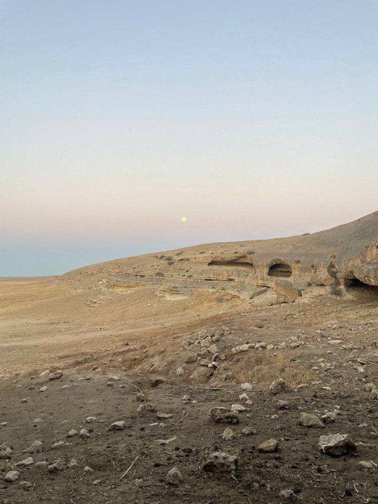 In de ondergaande zon piepen en woelen de gerbils rond mijn kamp. Schaduw zal hier niet veel zijn morgen, maar boven op het onnozele bergje heb ik wel internetontvangst, terwijl dat op de grond niet het geval is. In het heldere, witte maanlicht moeten de truckers me zien zitten op mijn aarden troon, maar in dit land vinden de inwoners het helemaal prima dat je in de betoverende natuur overnacht.