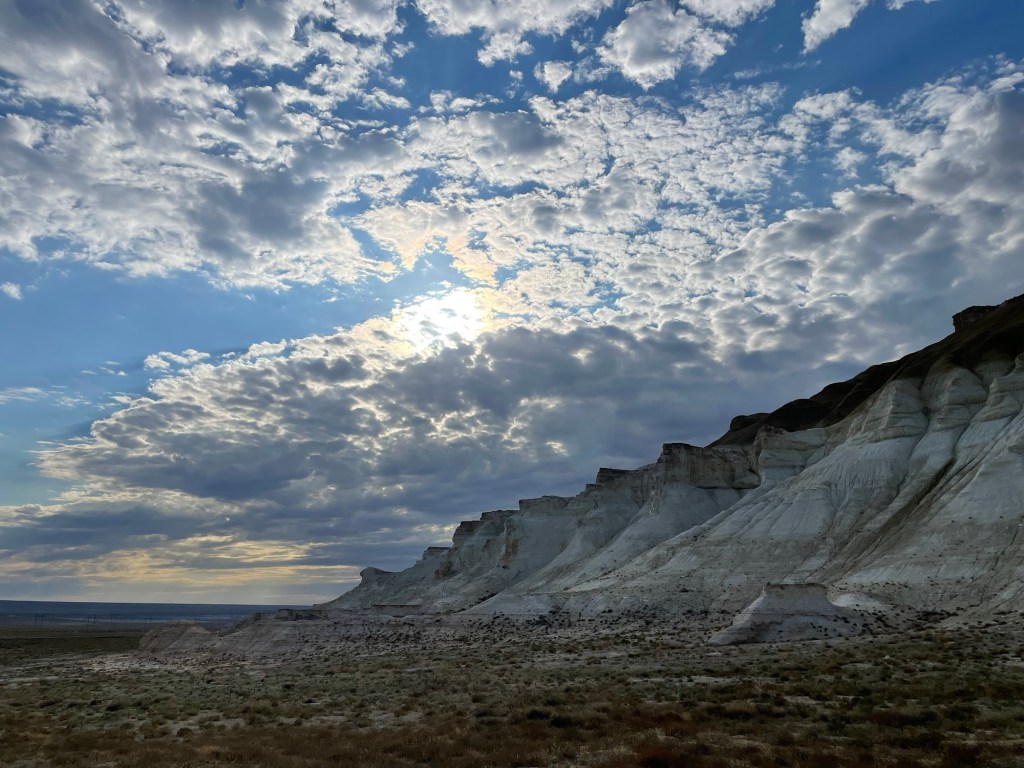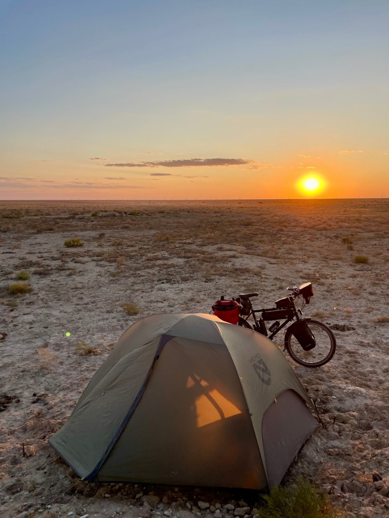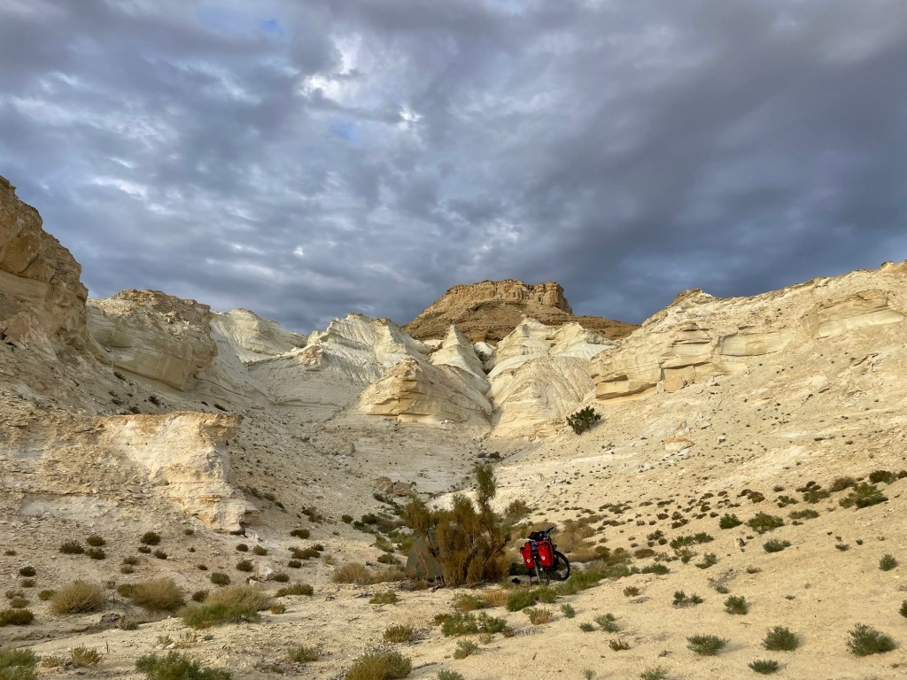 Het kan vreemd klinken, maar het deel van de grote reisroute waarnaar ik het hardst heb uitgekeken is dit: de kale Kazachse woestijn. In 5 ritten moest het van Aqtau naar de woestijnstad Beyneu gaan, dwars door de regio Mangistau. Met de wind aan mijn zij lukte het in 4 magische dagen, waarin zon en wolken met elkaar op de vuist gingen dat het kletterde en het van ‘s ochtends tot ‘s avonds betoverende lichten schetterde.