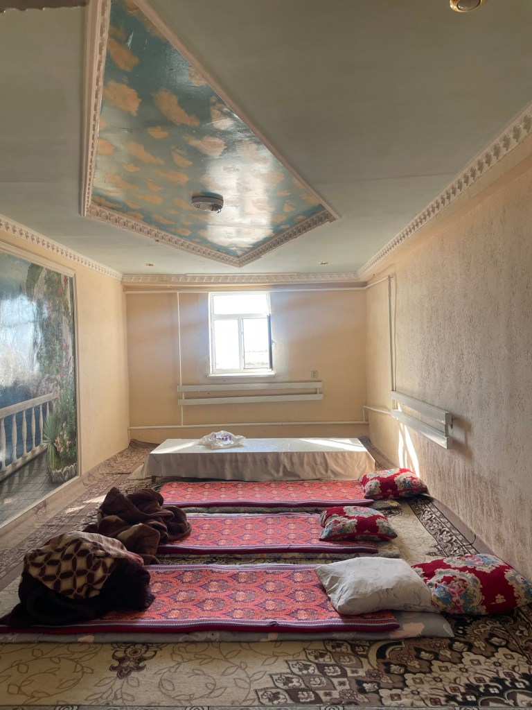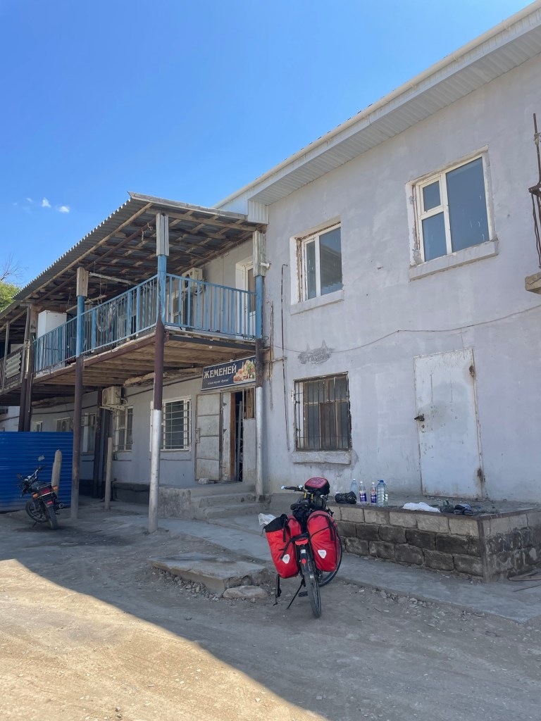 De magazins rij ik voorbij want ik rep me naar het station voor informatie over de treinen, online niet te achterhalen. Ik bemachtig een ticket voor die van morgen en besef op dat moment nog niet hoeveel geluk ik daarmee heb. De normale grenspost is gesloten vanwege de aanleg van een nieuwe weg. Enkel met de trein kan je vanaf hier nog naar Oezbekistan, waardoor tickets snel uitverkopen. Mijn plan is om bij de eerste halte, 100 km verder, af te stappen en per fiets de Oezbeekse woestenij in te trekken. Maar eerst … op hotel! Eens grondig dat stof en zand eraf schrobben.
