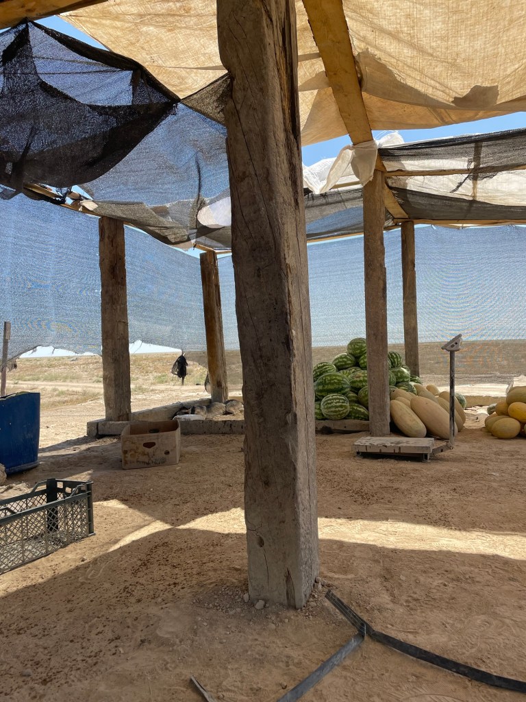 De meloenenman kapt drinkwater over in mijn lege fles en wil er geen geld voor hebben. Hij biedt me natuurlijk een spie van de grote vrucht aan, maar wie mij goed kent, weet dat ik na 12 jaar principiële vleesonthouding nog eerder een complete côte à l’os zal verorberen dan één schepbolletje cantaloupe. Onder de tent mag ik mijn stoel opzetten en lunchen. Ik bied ook wat van mijn eten aan maar volkorencrackers en groentespread staan mogelijk niet op ’s mans dieet.