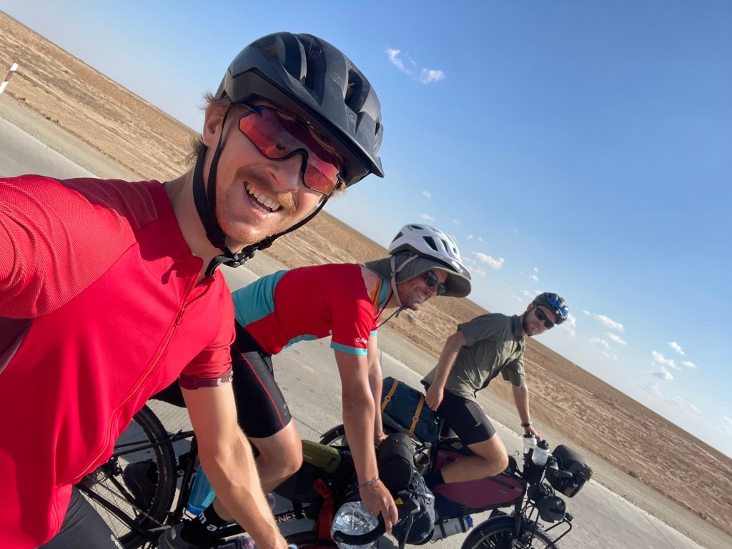 Fris als een zandhoentje ontwaak ik naast mijn twee nieuwe, Brusselse kameraads, Henry et JB. Voor vertrek willen we met z’n drieën op de foto maar het is hilarisch moeilijk om dat klaar te spelen zonder photobombende Oezbeek. Vanaf ons theehuis draaien we recht de E40 op. Jawel, dé E40, diezelfde die door ons Belgenlandje meandert maar hier in één rechte lijn het land doorkruist. Voor mij is het dag 100, voor de ingevlogen JB dag 1.