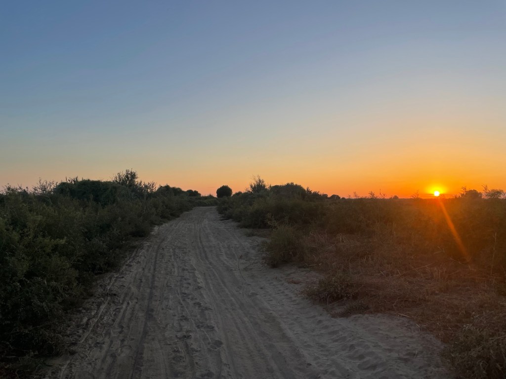In de stad is naar verwachting niet veel te bezoeken, behalve dan een goedgevulde supermarkt. De hele tijd heb ik me mentaal en praktisch ingesteld op een woestijn. Nu weet ik opeens niet meer waarnaartoe. Naast een zandweg tussen de katoenvelden, bij het getsjirp van krekels, tref ik uiteindelijk een schaduwplek onder enkele dikke wilgen, in het gezelschap van een koe en haar kalf. De zon zinkt weg achter het groen en moe maar voldaan zet ik me neer, zo content als wat, want het vorige afstandsrecord is verpulverd met potjandorie 190 kilometer. Dat ga ik niet meer overtreffen.