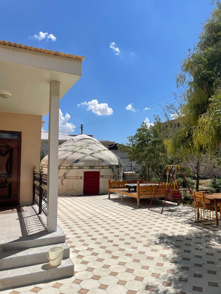 De voorstad gaat over in de grote stad Nukus, of Nókis, waar ik vlot mijn weg doorheen vind tot aan het rustig gelegen gastenverblijf. Morgen zal ik hier lustig verpozen, want de benen, die smeken erom.