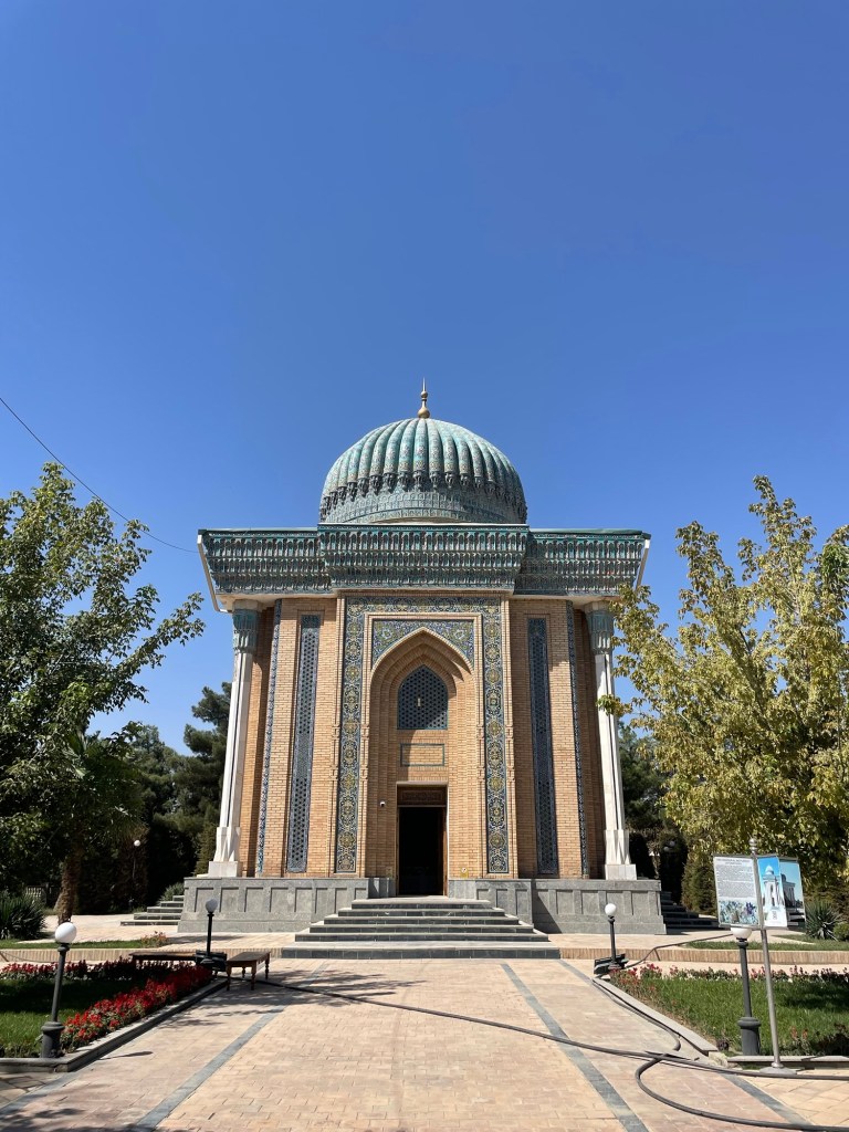 Op mijn weg uit de stad pik ik nog een mausoleum mee en een zandweg met een stoflaag waarin mijn banden verdwijnen als ware het bruine poedersneeuw. Gisteren ervoer ik tergende spierkrampen en hetzelfde spiertje tintelt nu in mijn rechterbeen, op het punt om dicht te klappen, maar ik ga echt niet niet fietsen vandaag. Over drie dagen wil ik in Doesjanbe slapen. Om een Chinees visum aan te vragen in Tadzjikistan moet je blijkbaar eerst een Tadzjieks visum hebben.