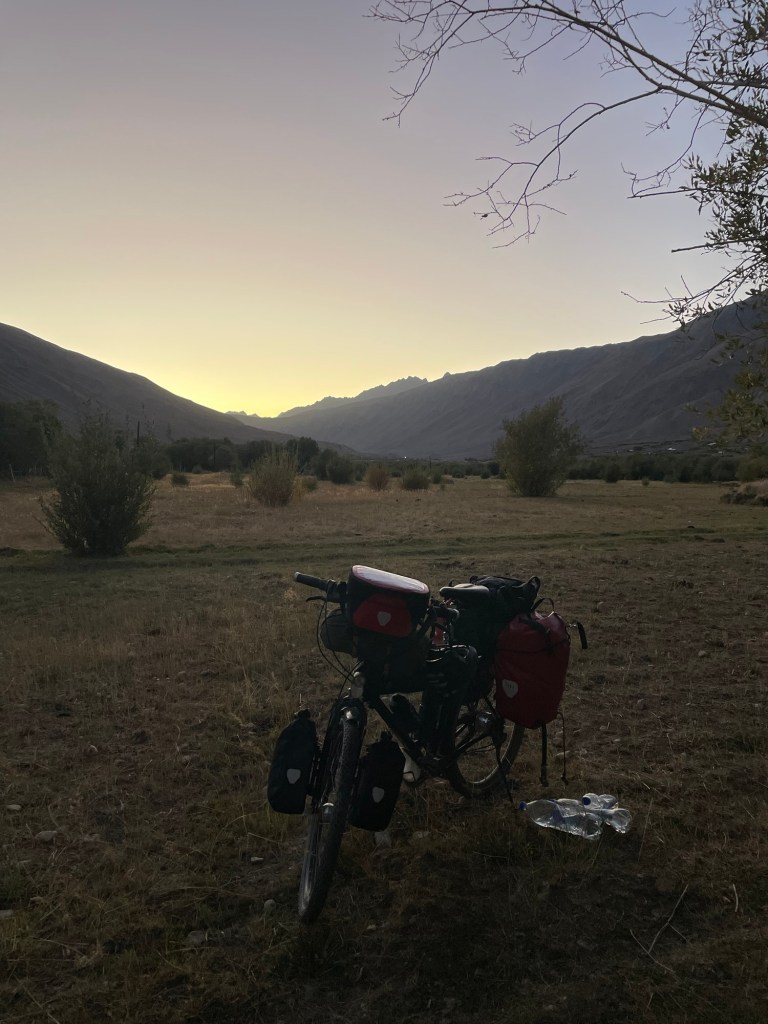 Tegen de verwachting in zit er een pietluttig winkeltje – zo klein dat ik met mijn helm tegen de chambrang stoot – waar ze geen druppel water verkopen. Een plek zoeken neemt weer wat tijd en zo overschrijd ik toch nog net de kaap van honderd vandaag. Op privégrond bij een kleine waterloop mag ik volgens een kind staan, dus sla ik haastig kamp op. Het koelt in geen tijd af en ik moet mijn vingers al bij het koken ontdooien boven de pruttelende pot. Nadien is het meteen de tent in en hopen dat de al te strenge kou maar buiten blijft vannacht.