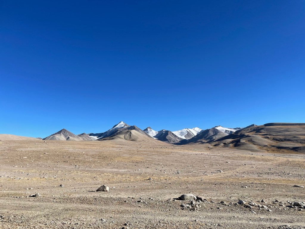 Op een mossige vlakte hossen dikke, rosse marmotten rond. Er lopen er wel tien tegelijk en allemaal schieten ze het dichtstbijzijnde hol in. Vanaf daar volgen steeds steilere hellingen elkaar op, met zicht op overgebleven gletsjertjes bovenop afgelegen bergtoppen. Uit de tegengestelde richting komen met veel gebulder vrachtwagens gesjeesd en elke keer is het een Chinese Shacman.