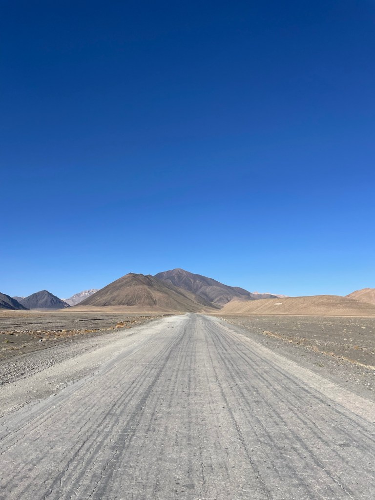 Op enkele kilometers van Murghab moet ik pas een extra lamp op mijn kop om goed het wegdek te kunnen zien. Voor de stad wordt in het donker mijn GBAO-permit nog maar eens gecontroleerd. Het voelt bijlange niet zo koud als verwacht. Ik zweet me nog een ongeluk met enkel een windstopper overaan.