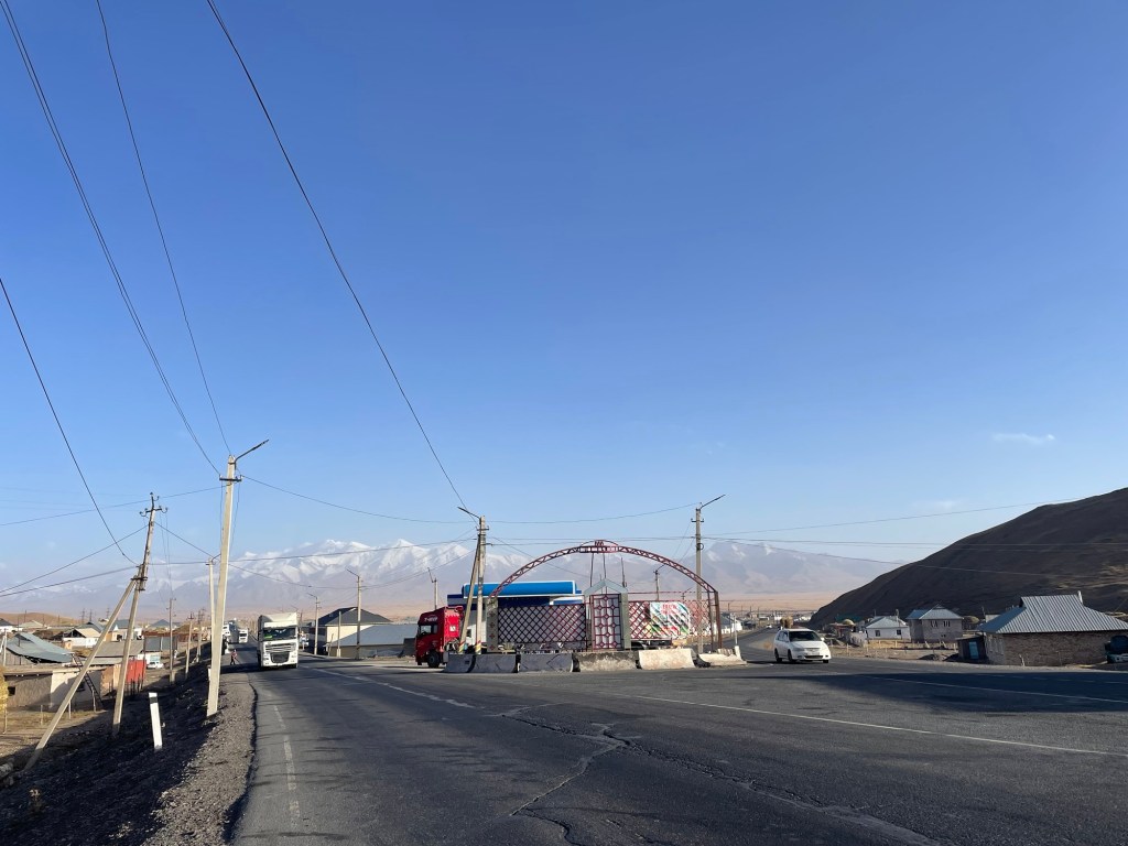 Uitchecken van Kirgizië duurt niet lang, al zijn er ook weer een stuk of 5 paspoortcontroles. Tegen de gulle glimlach van de grenswachters en een trucker die me gedroogde abrikozen schenkt, spreek ik er mijn laatste woorden Russisch.