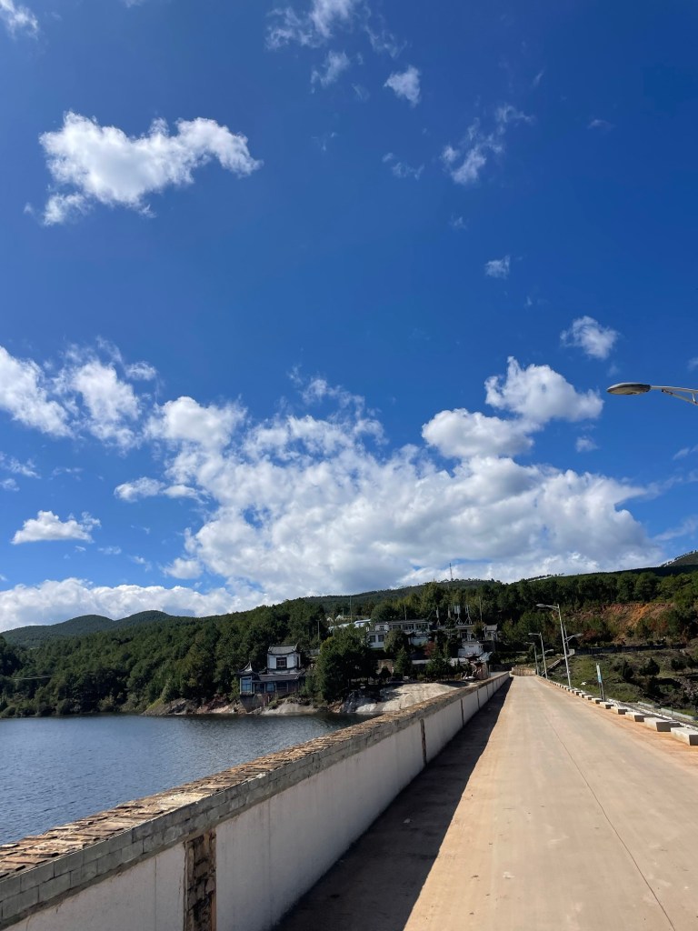 Langs het meer ligt een dorp waar amper iets te horen valt. Rust en vrede in China, het kan dus toch. Na het Lashihai-natuurreservaat zijn bij de eerste afdaling de bergen op links volgebouwd met windmolens. Het is zo stil dat op kilometers afstand de wieken hoorbaar wentelen.