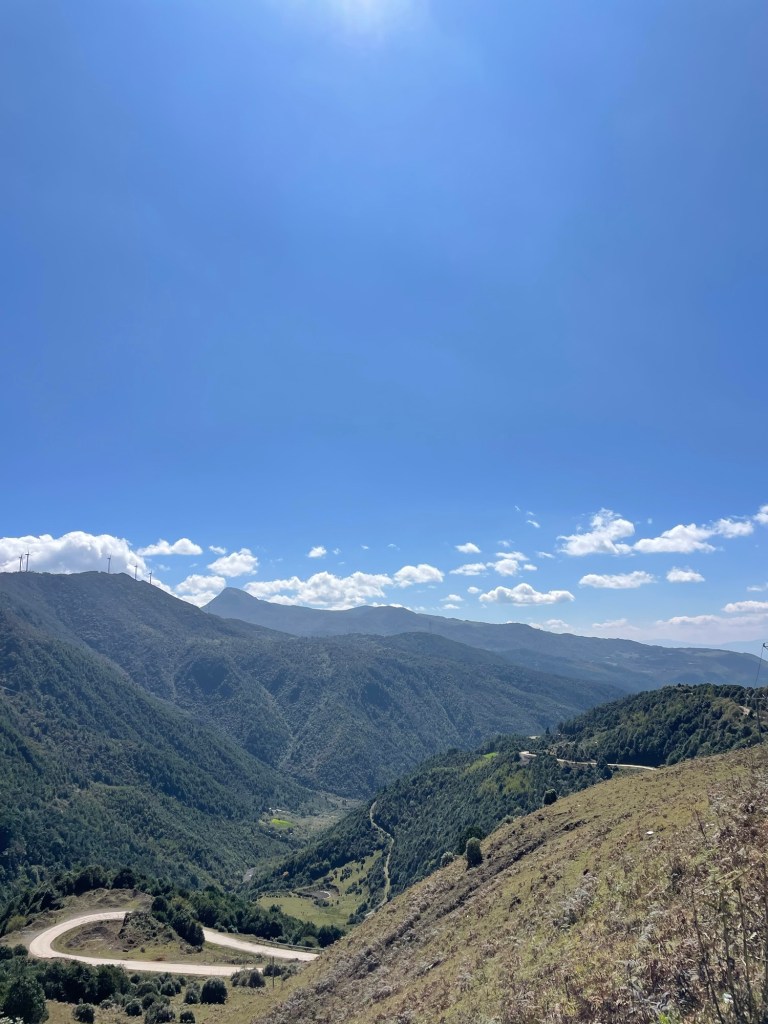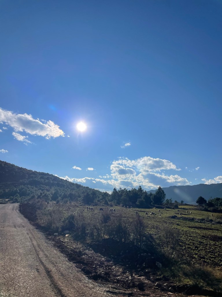 Op een landbouwvlakte schitteren vogels om de vleugelslag zilver in de zon. Tijdens weer een steile klim verdwijnt ze achter de bergen, terwijl de vlakte geel, bruin en groen kleurt. Het is kampeertijd, maar ik heb te weinig water. Ik heb weleens gehoord dat je niet zonder kan, dus bij het eerste dorp blijf ik zoeken tot er een kraantje opduikt.